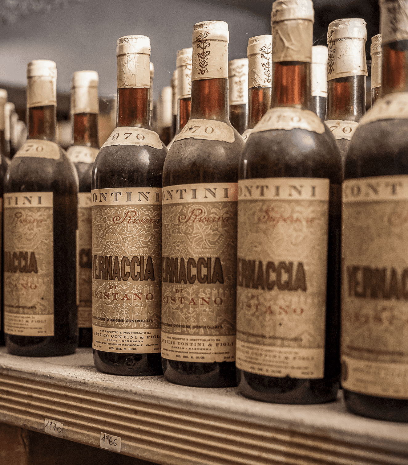 A fundamental importance in the history of this grapevine is owed to the Contini family, who, thanks to the intuition of Salvatore Contini, decided to transform a family production into a winery, founding in the distant 1898 the first and oldest winery on the Island, the Cantina Contini based in Cabras. Salvatore's son, Attilio, took the reins of the company from the early ‘30s and chose to mainly enhance the two strictly local grape varieties: the Vernaccia di Oristano and the Nieddera of the Tirso Valley. Some minor varieties were also kept, including those that, like the Caddiu, a red berry variety, are almost extinct today. Attilio grew the company during a historical period when per capita wine consumption was quite high. Since the middle of the last century, Vernaccia has grown both in production and sales; it was sold throughout the Island and became an exportable product, particularly the aged version. The growth was so significant that it became the first wine awarded the DOC in Sardinia in 1971.