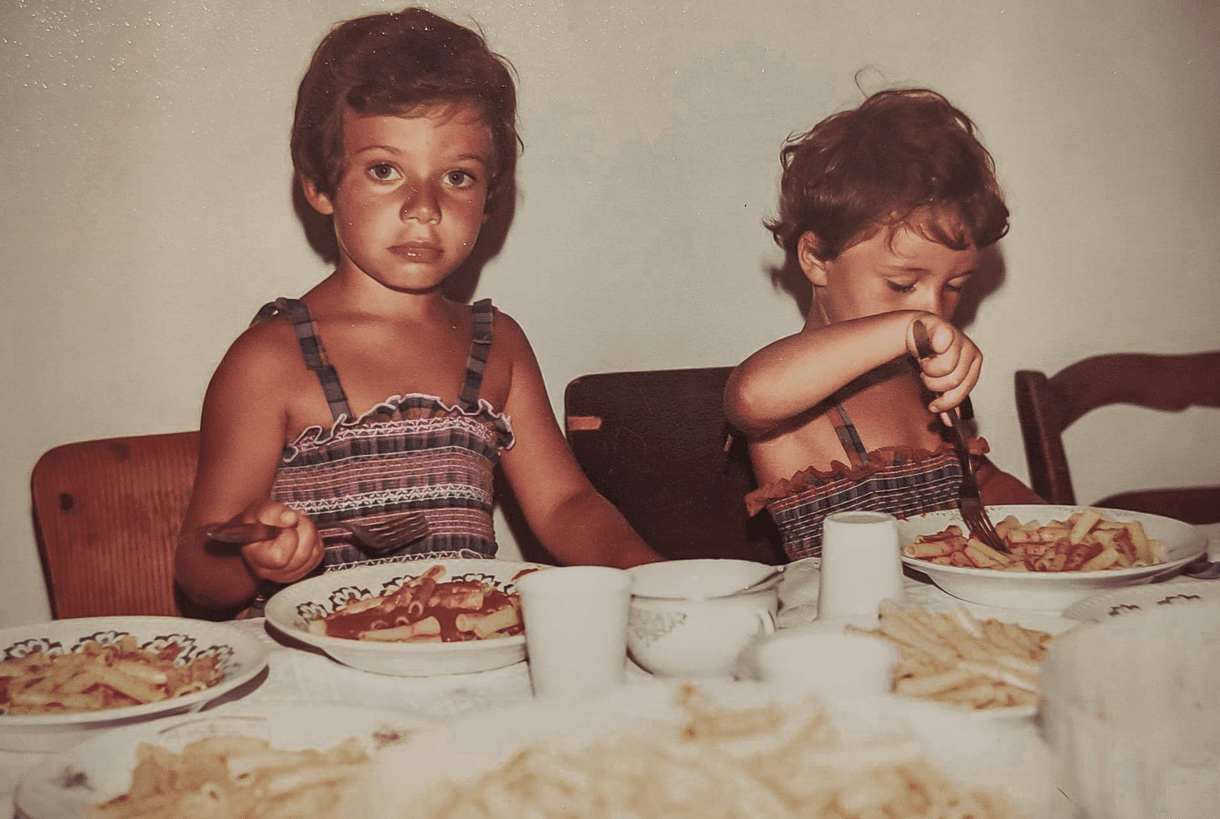None of us had a smartphone with us at the table, and it wouldn't even have crossed anyone's mind to take a camera and snap a picture of the dishes. Yet we have so many food-related photos in our family albums. It's just that those snapshots have a different, special flavor because they tell our stories. I think of many family photos of mine where food is a supporting actor, not in the spotlight like in our Instagram shots, but perhaps because of that, even more central because it is enriched by the power of storytelling. I remember my father peeling prickly pears on the terrace by the sea with a fork and knife to avoid getting pricked by a fruit that was truly desired and picked warm from the plants in the Modican countryside. Or my mother cleaning mussels for our Ferragosto dinner with my sister and me during summers long ago when the summer holiday still existed. Or my grandmother rolling out a long, thin dough for ravioli in a 1970s kitchen on one of those many Sundays when we went out to restaurants less often, because Sundays were for grandparents' houses. Our rolls, like those of Scianna, didn't just focus aesthetically on the dish or the glass, but there was always context.